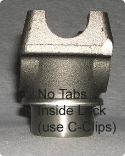 The photo shows the difference: the left yoke has a standard 1 1/16 cap, while the right BC (Big Cap) yoke needs a 1.125 cap. A loose fit indicates play, which is too much. This could mean a worn yoke or the wrong UJ cap, causing high-speed vibrations and shiny rub marks inside the yoke.